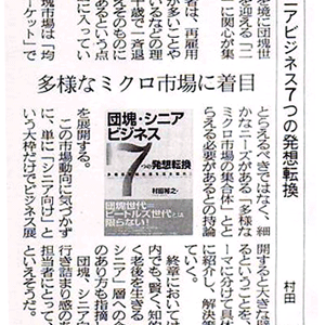 日経MJ編集委員の石鍋仁美さんによる『マーケティングの「非・常識」』に拙著「団塊・シニアビジネス 7つの発想転換」に関するコラムが掲載されました。