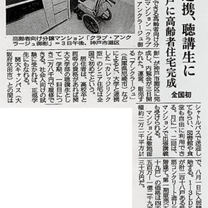 日本初の大学連携型高齢者分譲住宅「クラブ・アンクラージュ御影」(神戸市灘区)が3日、報道陣に公開された。高齢者住宅運営のアンクラージュ(兵庫県尼崎市)が運営母体となり、関西大学が学習プログラムを提供する。